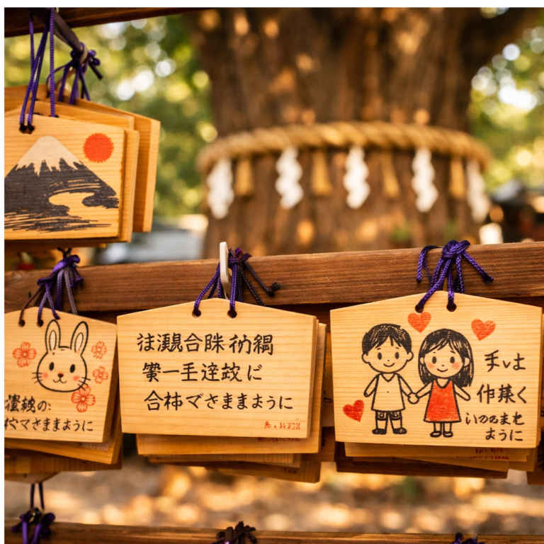A escrita de desejos em pequenas placas de madeira chamadas ema, e as orações silenciosas feitas diante do altar. Esses gestos simples carregam um profundo significado espiritual e cultural.