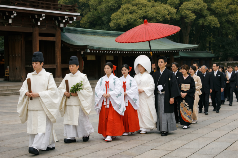 O xintoísmo, religião nativa do Japão, valoriza a pureza, os ciclos da natureza e a veneração dos antepassados. No Santuário Meiji, os visitantes podem participar de rituais tradicionais, como a purificação das mãos e da boca nas fontes de água (temizuya),